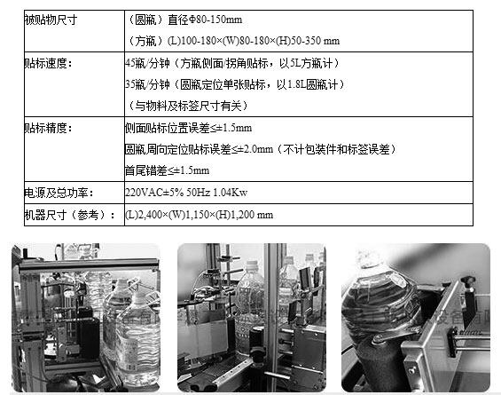滿足食品、糧油等行業(yè)在方形、圓形瓶狀物料上快速自動貼標需求,實現(xiàn)了方瓶/扁瓶(滿瓶狀態(tài))的側(cè)面(平面)單張貼標或拐角貼標,同時還能滿足圓瓶周向定位單張/雙張貼標功能需求。通用性好、高穩(wěn)定性、耐用
